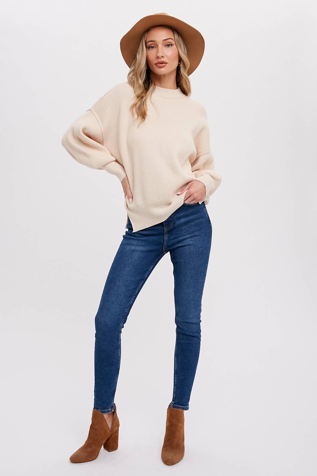 Bluivy - Ribbed Mock Neck Pullover
