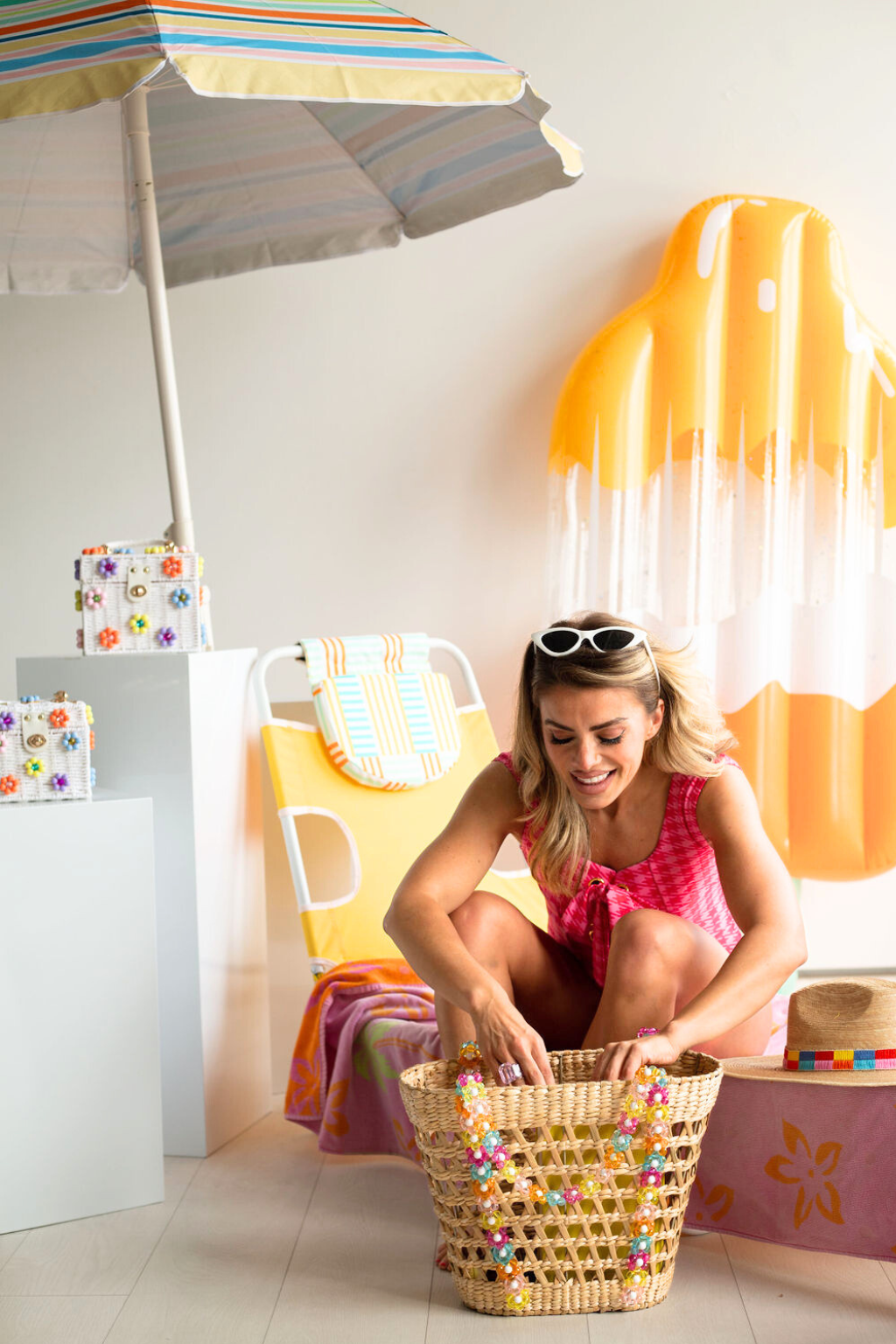 By Jenna Lee - Colorful Beaded Straw Beach Basket Tote