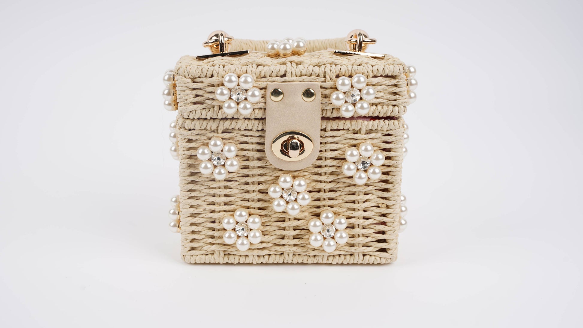 Straw floral daisy vacation bag or raffia summer clutch for pool