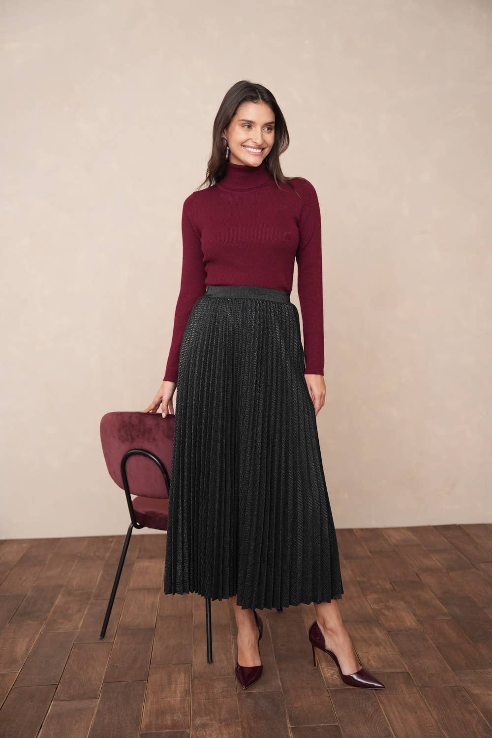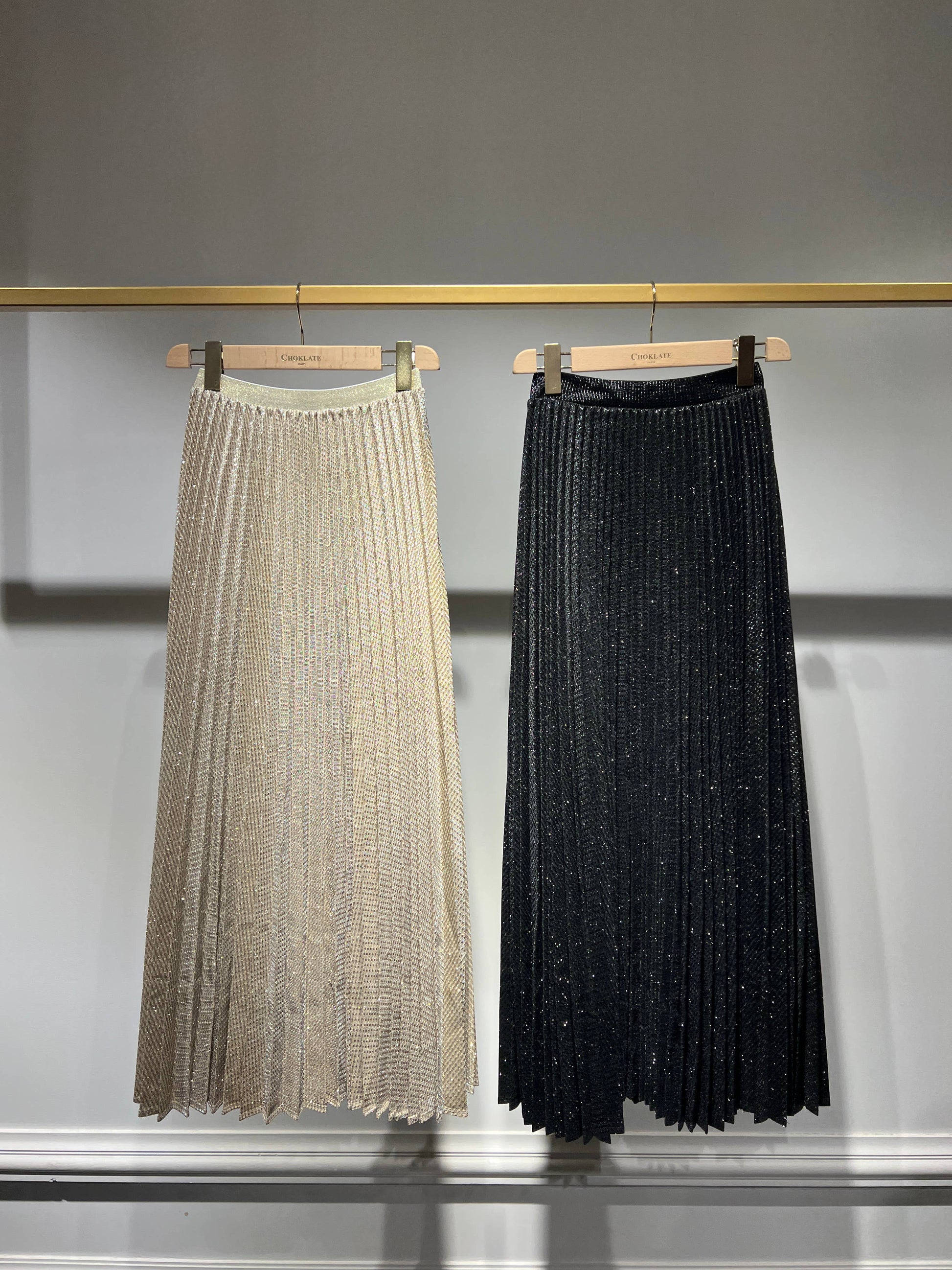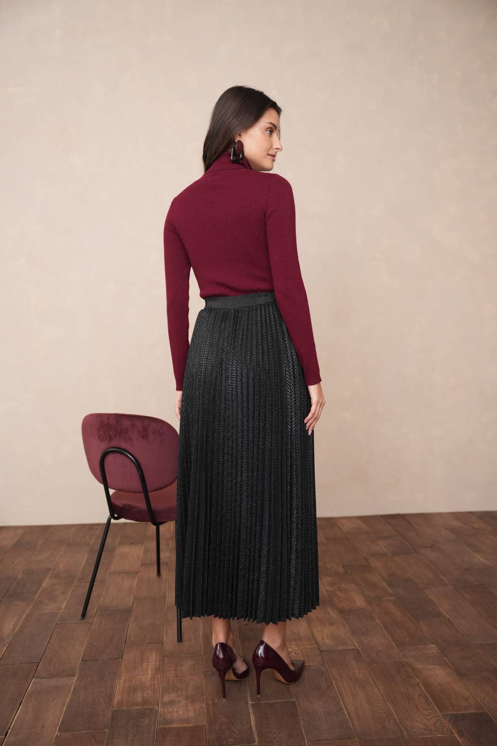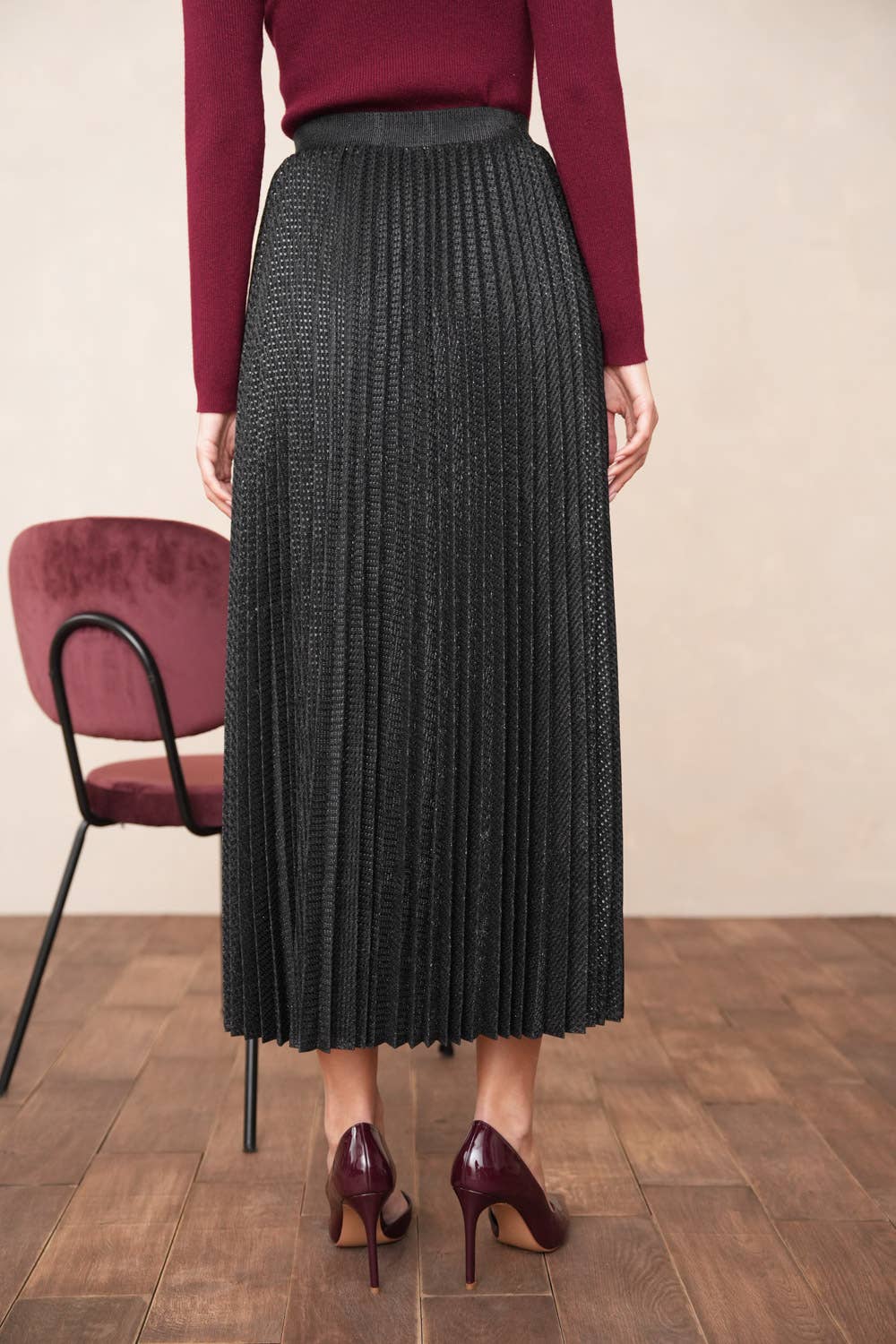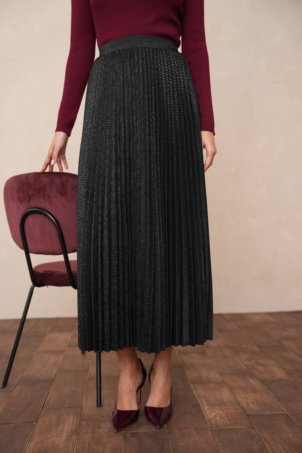Choklate Paris - Long Pleated Skirt with Metallic Threads - Black