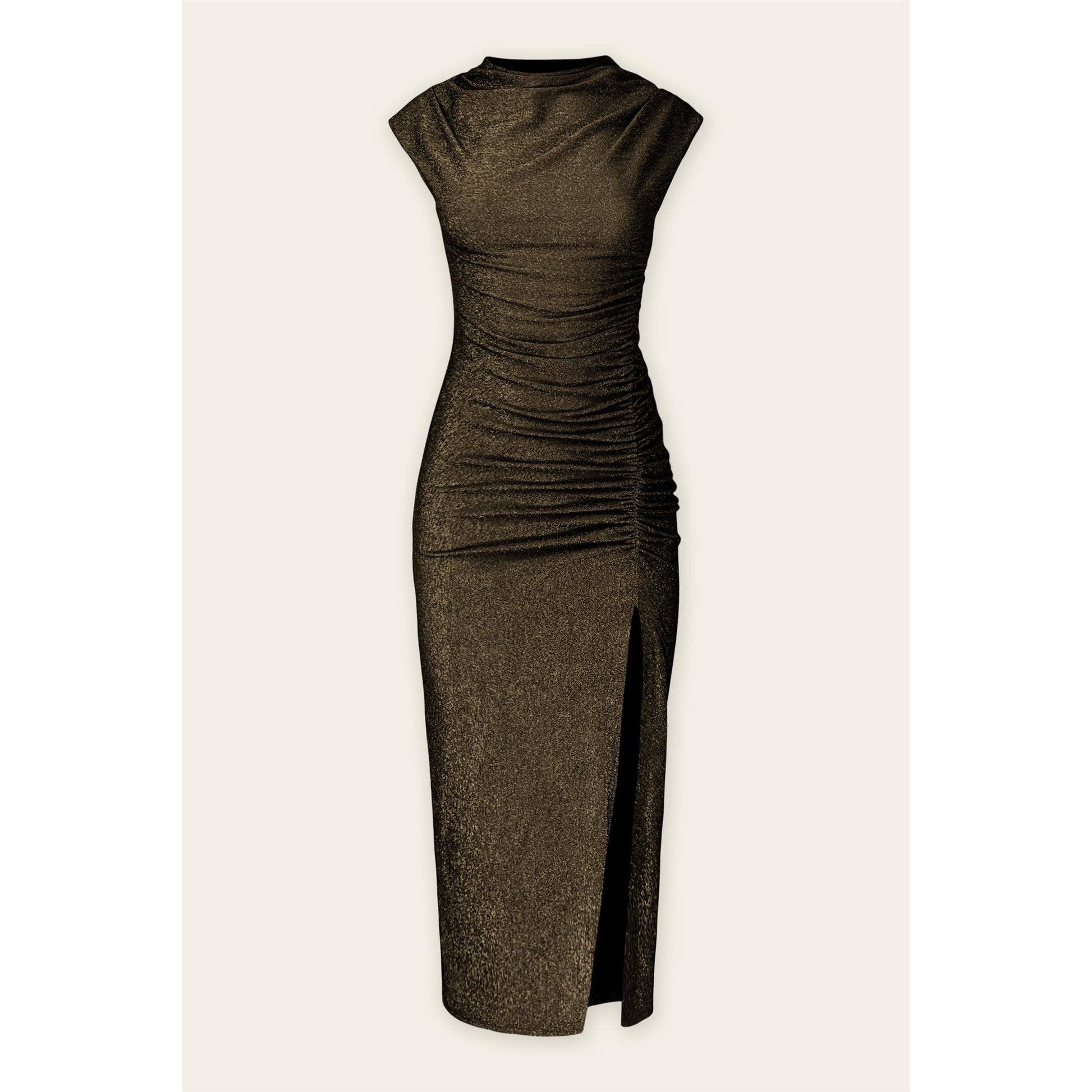 Dress Forum - Metallic Mock Neck Midi Slit Dress - Black/Gold