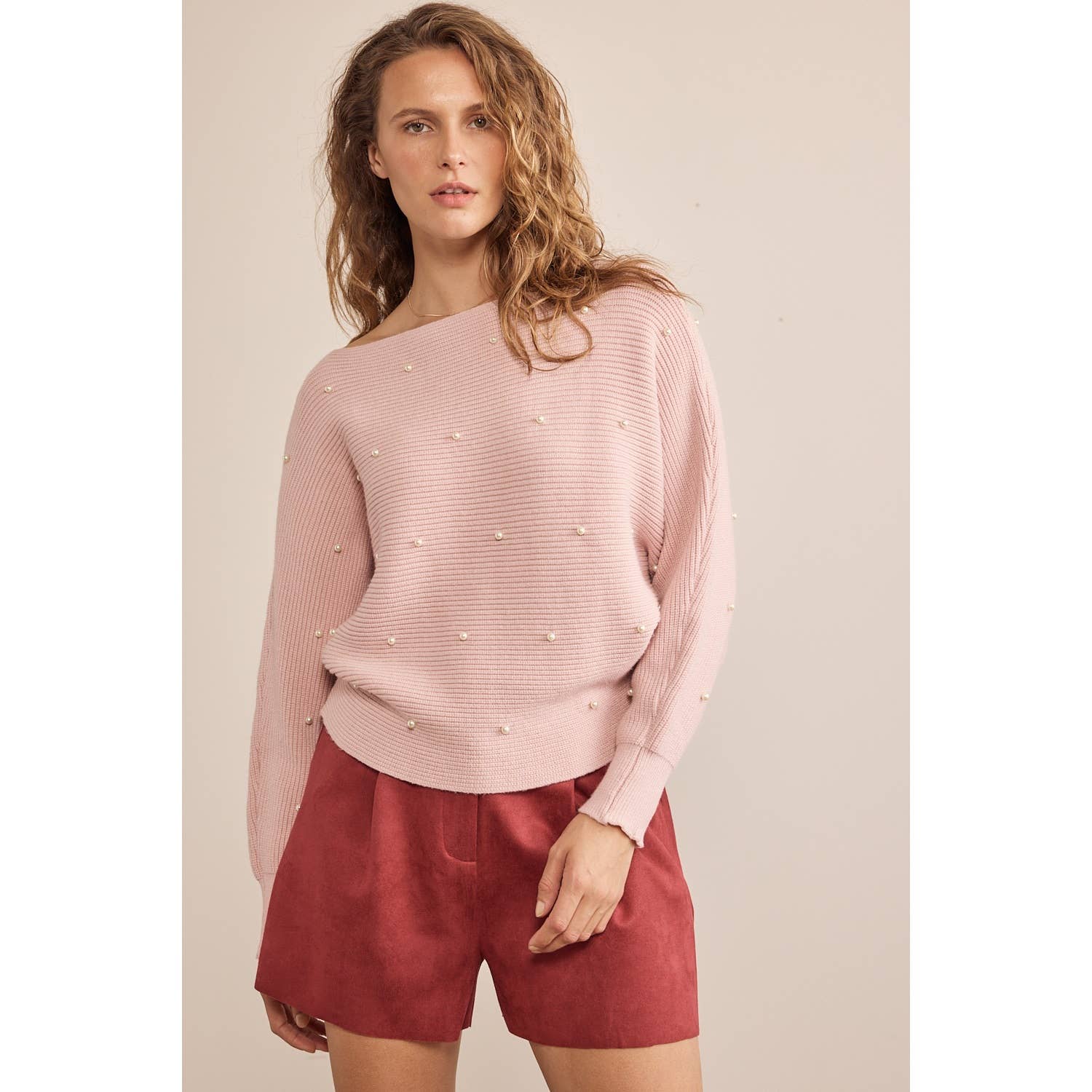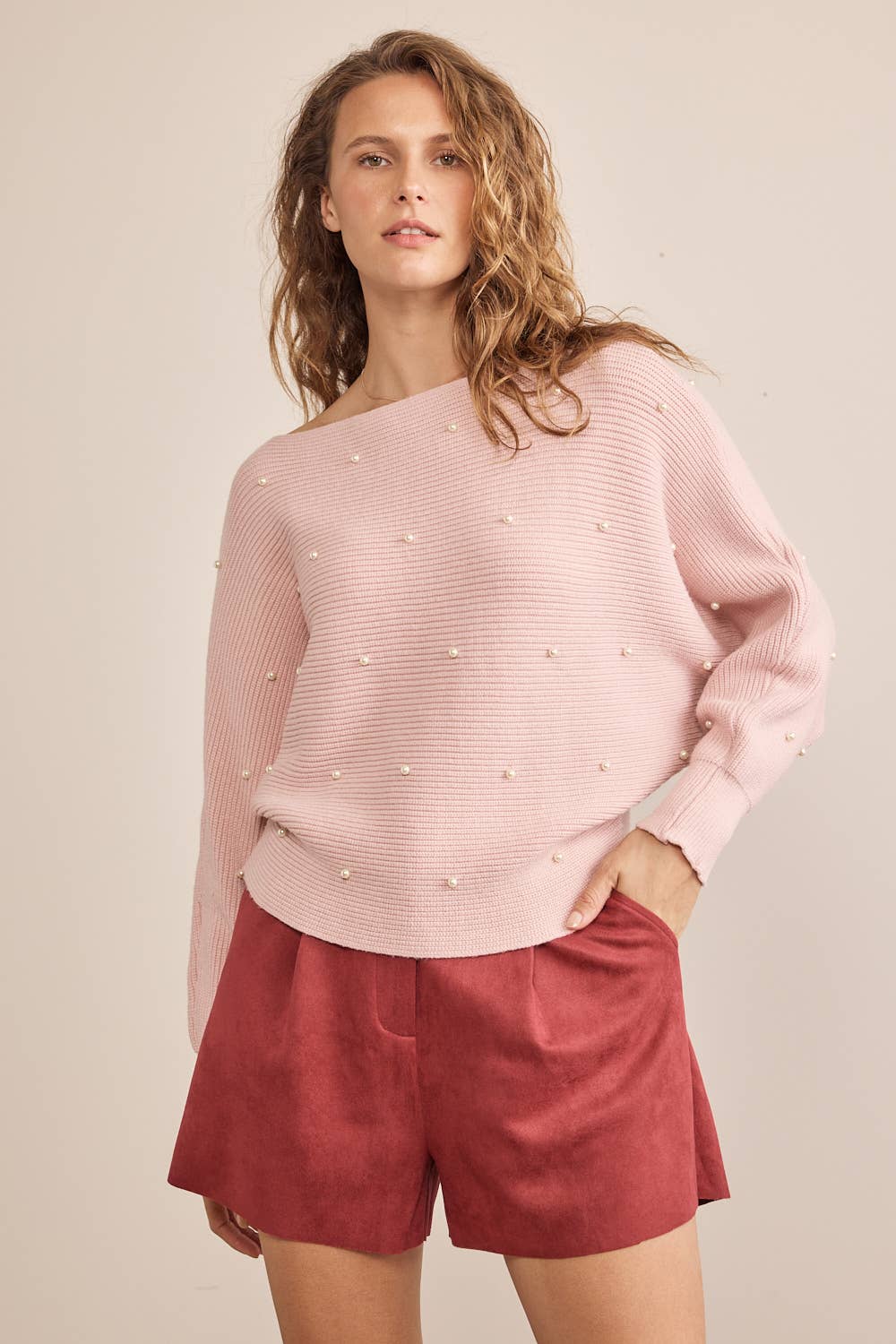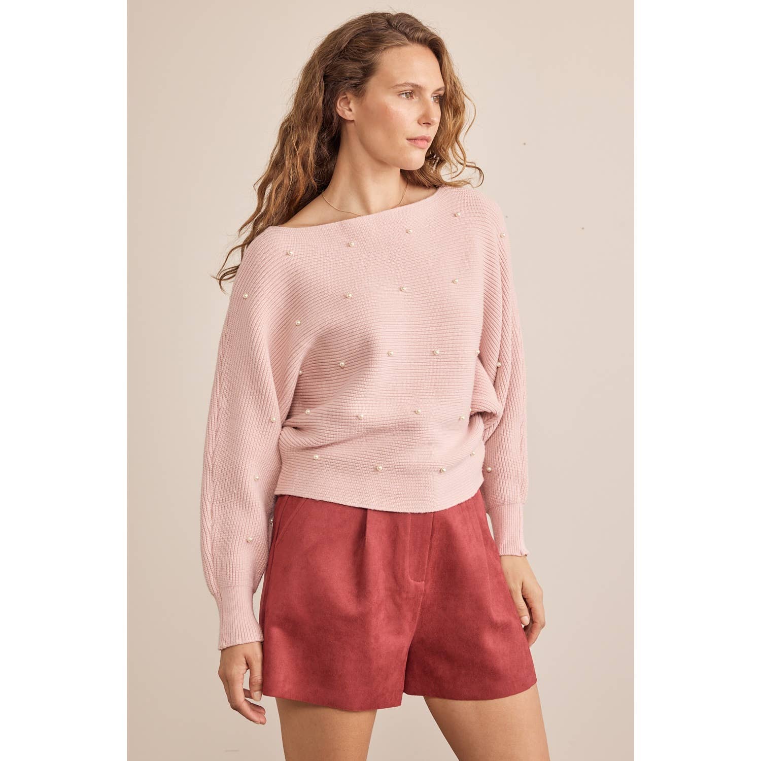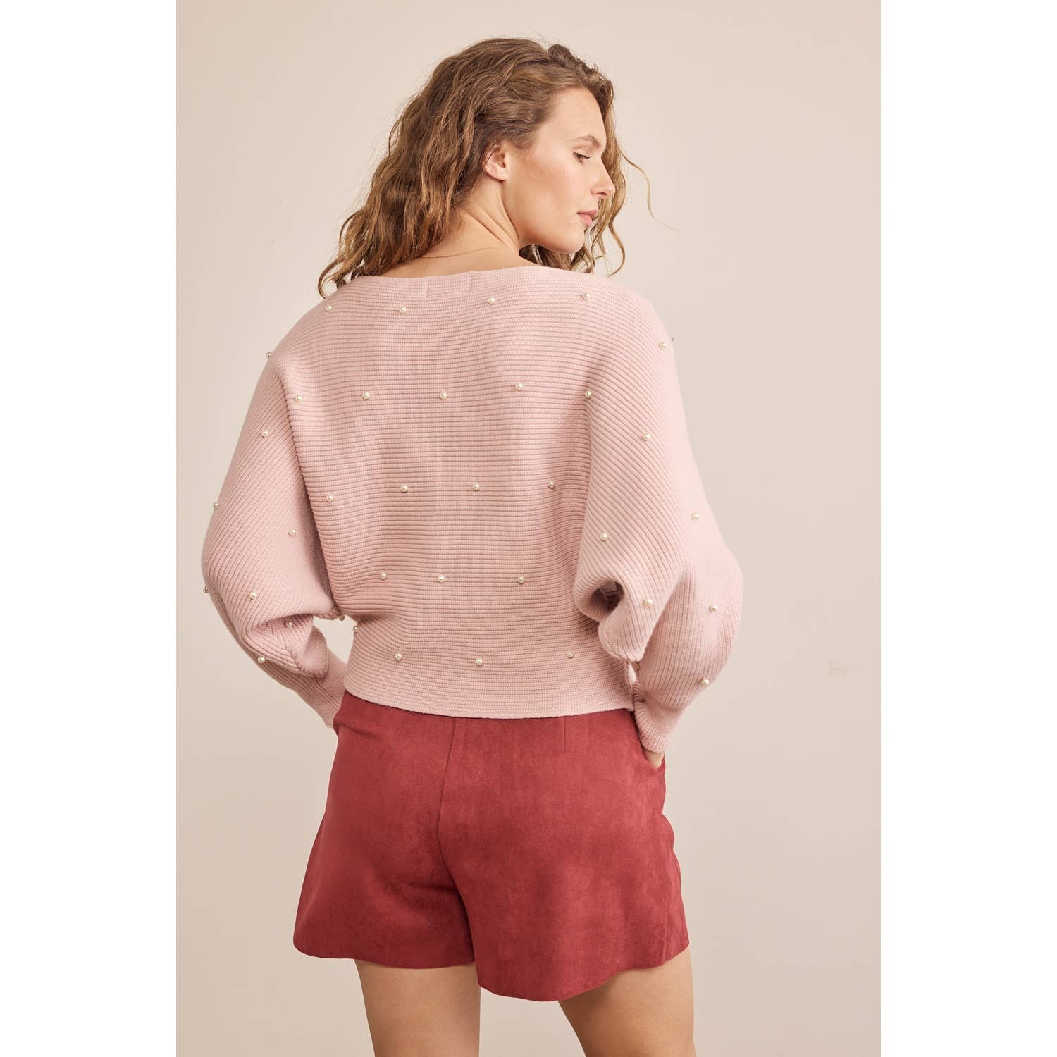 in february - Pearl Embellished Dolman Sleeved Sweater