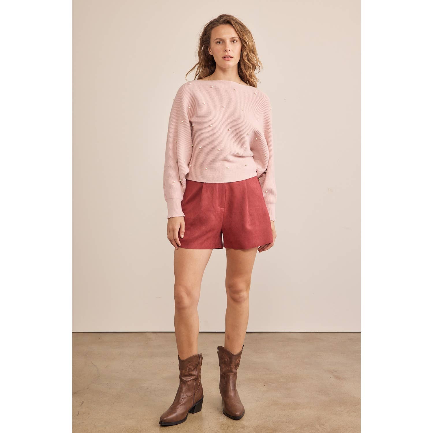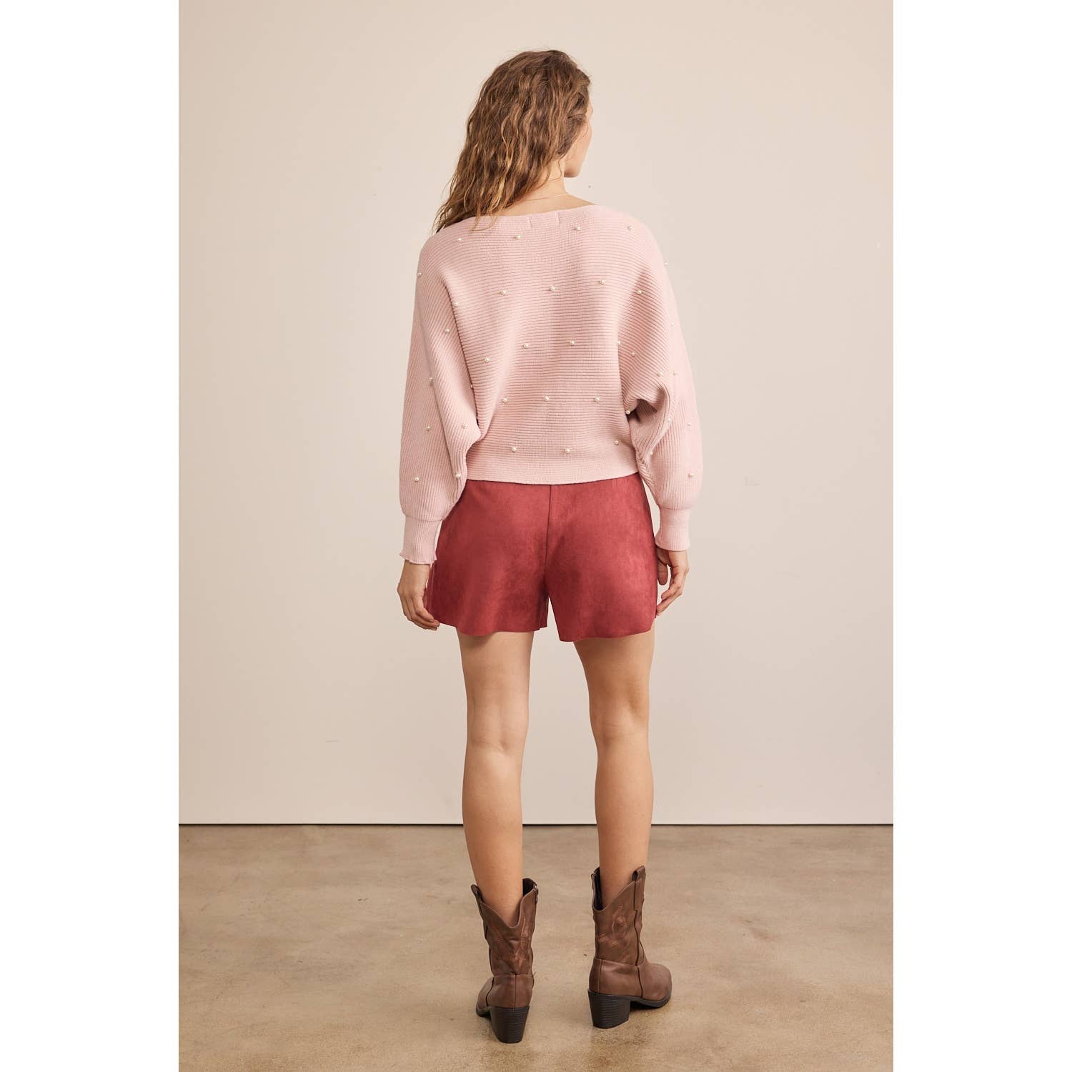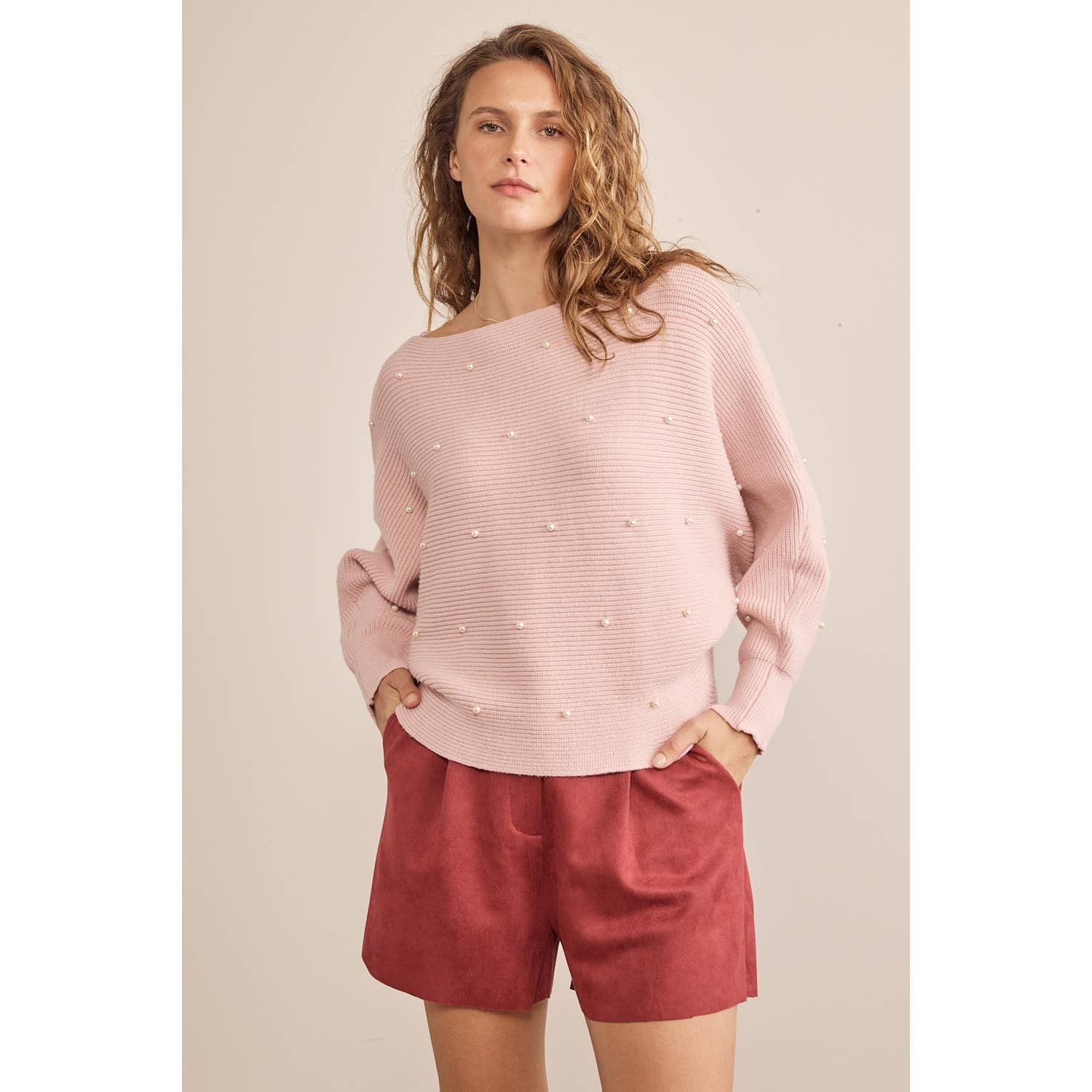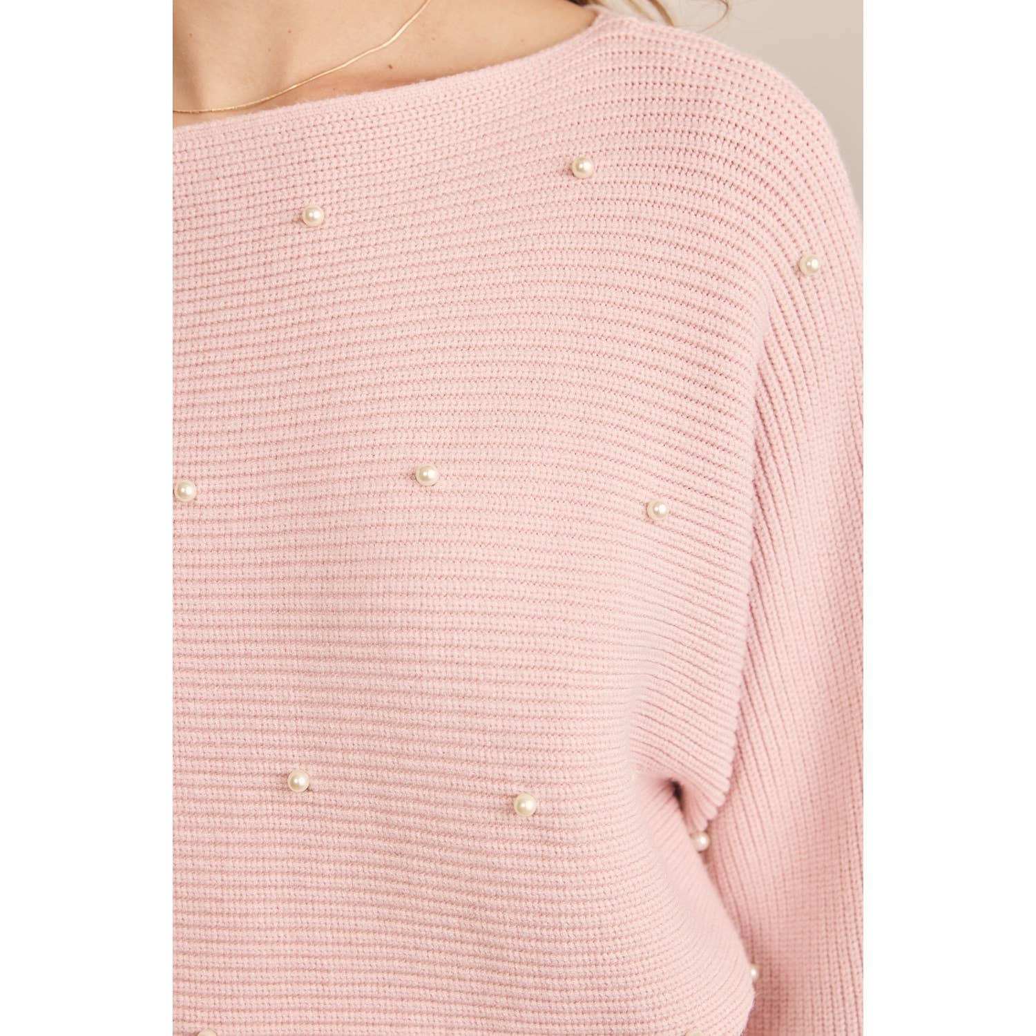 in february - Pearl Embellished Dolman Sleeved Sweater