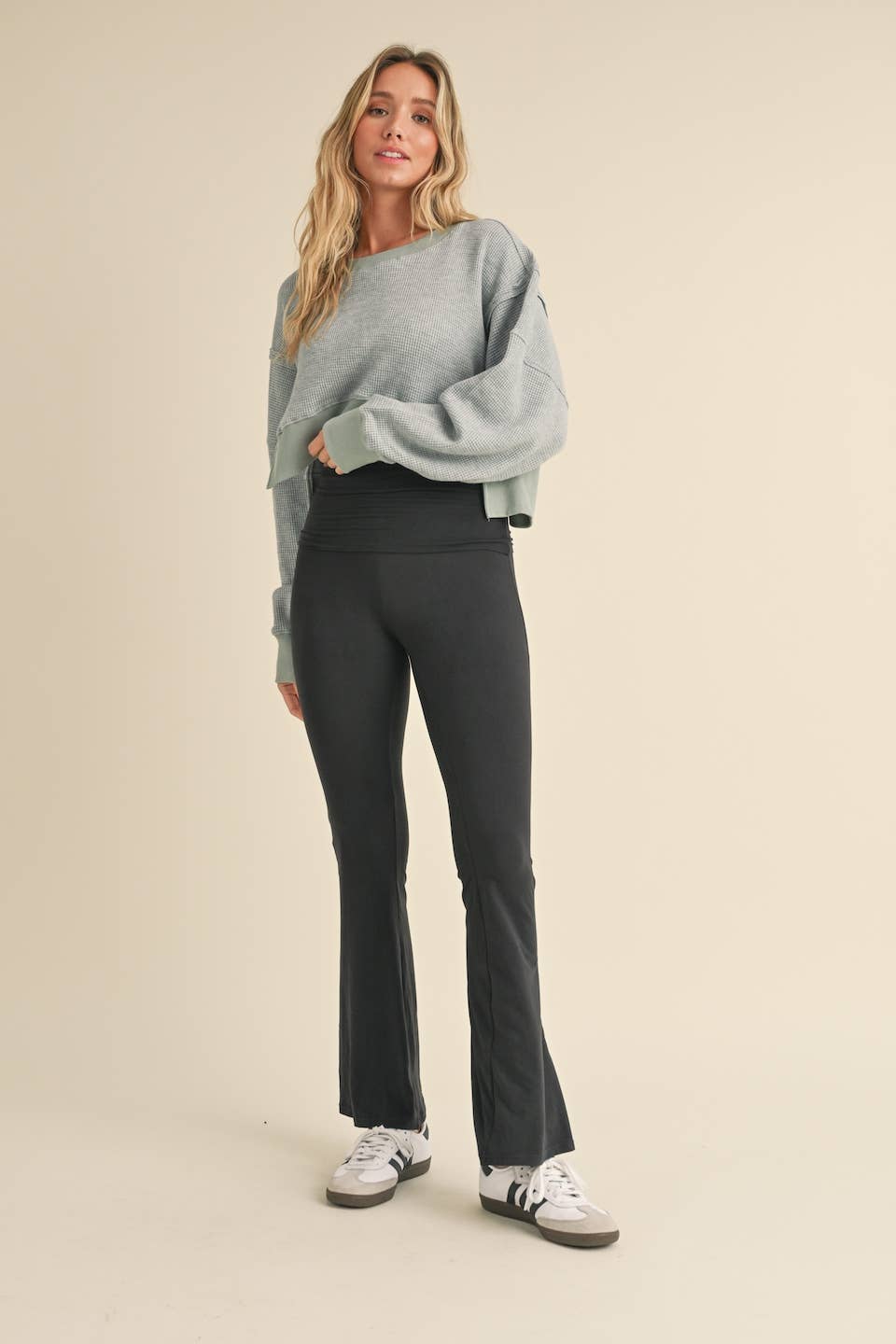 Soft, oversized sweater made of cozy waffle knit fabric.
