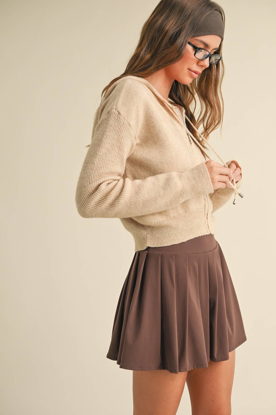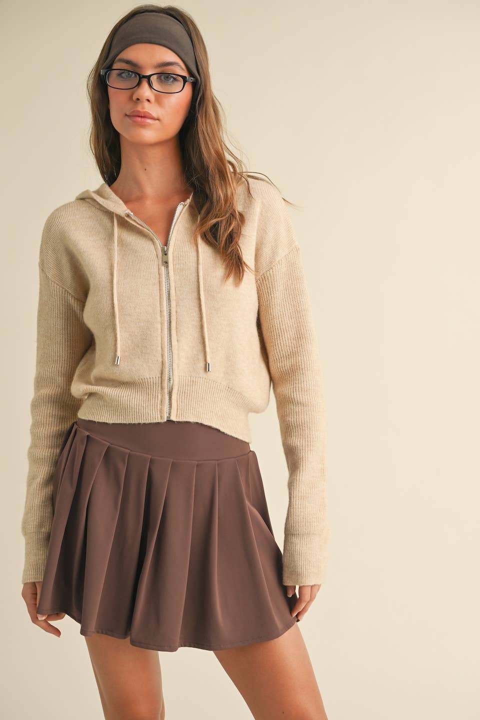 KIMBERLY C - Zip Up Knit Sweater Hoodie - Beige