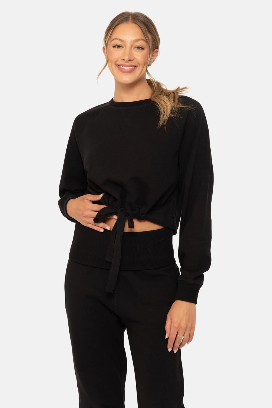 A cute twist on a classic style, this pullover crewneck is your new loungewear essential. It features a brushed fleece interior, an adjustable waist tie in twill tape, and a ribbed neckline & cuffs.