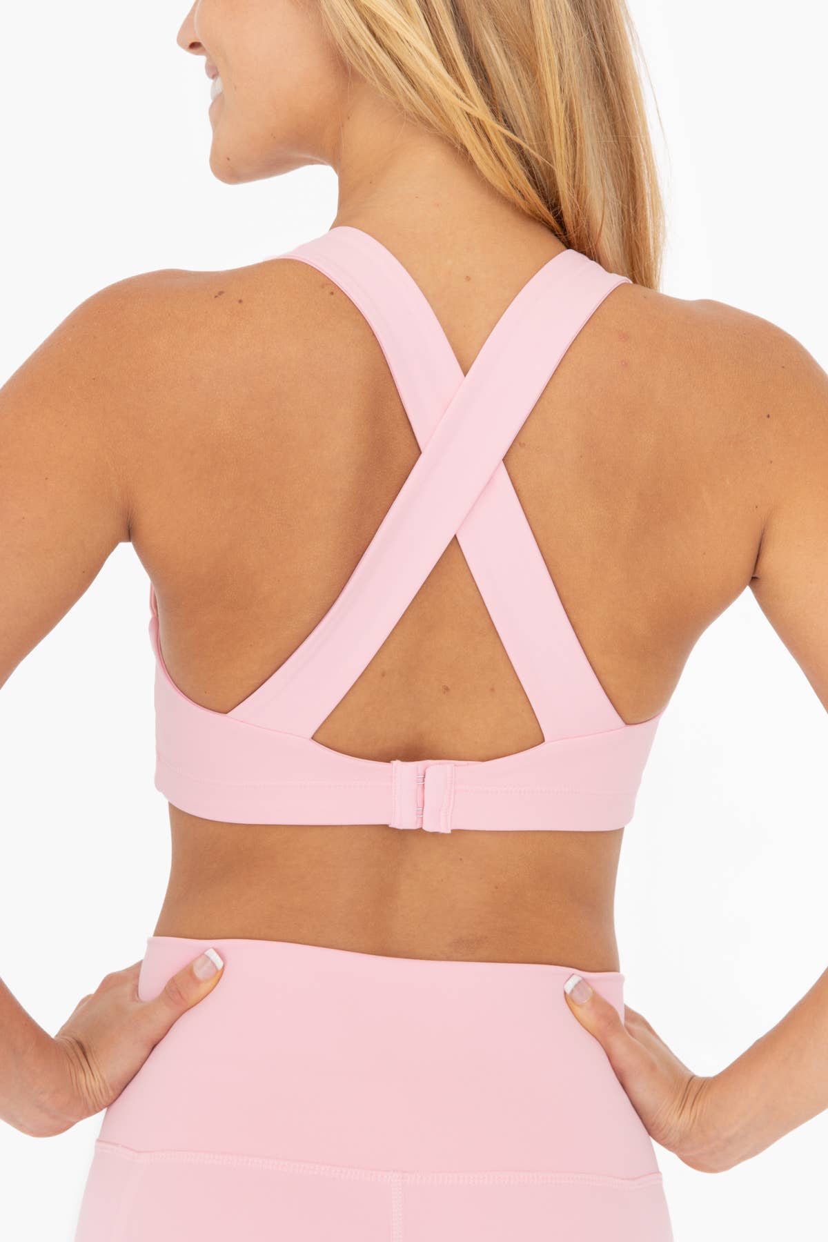 Mono B - Split Front Overlay Back Adjustable Sports Bra - Candy Pink