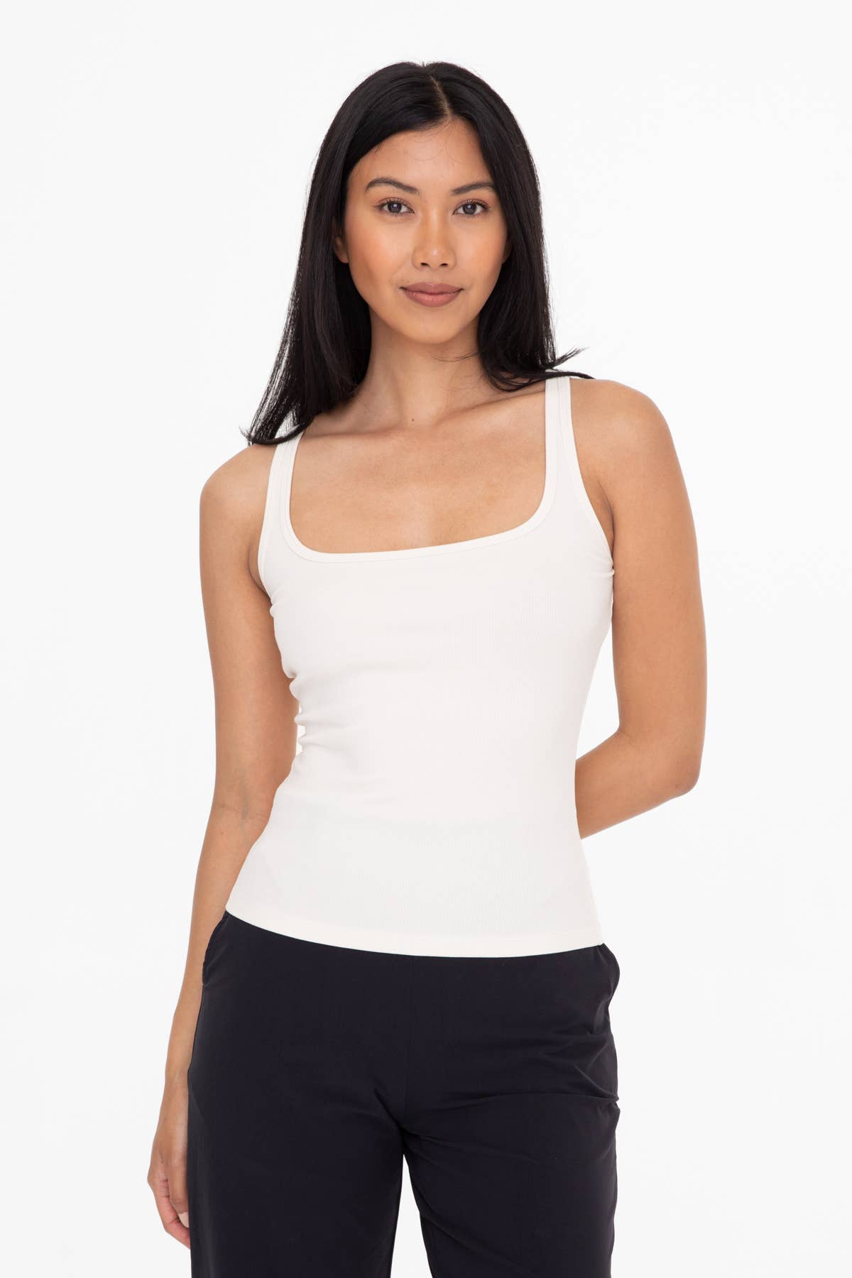 Mono B - Square Neck Ribbed Tank Top - Natural