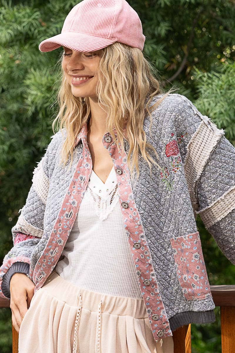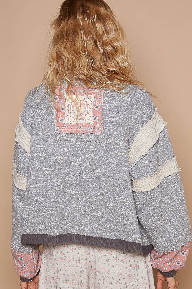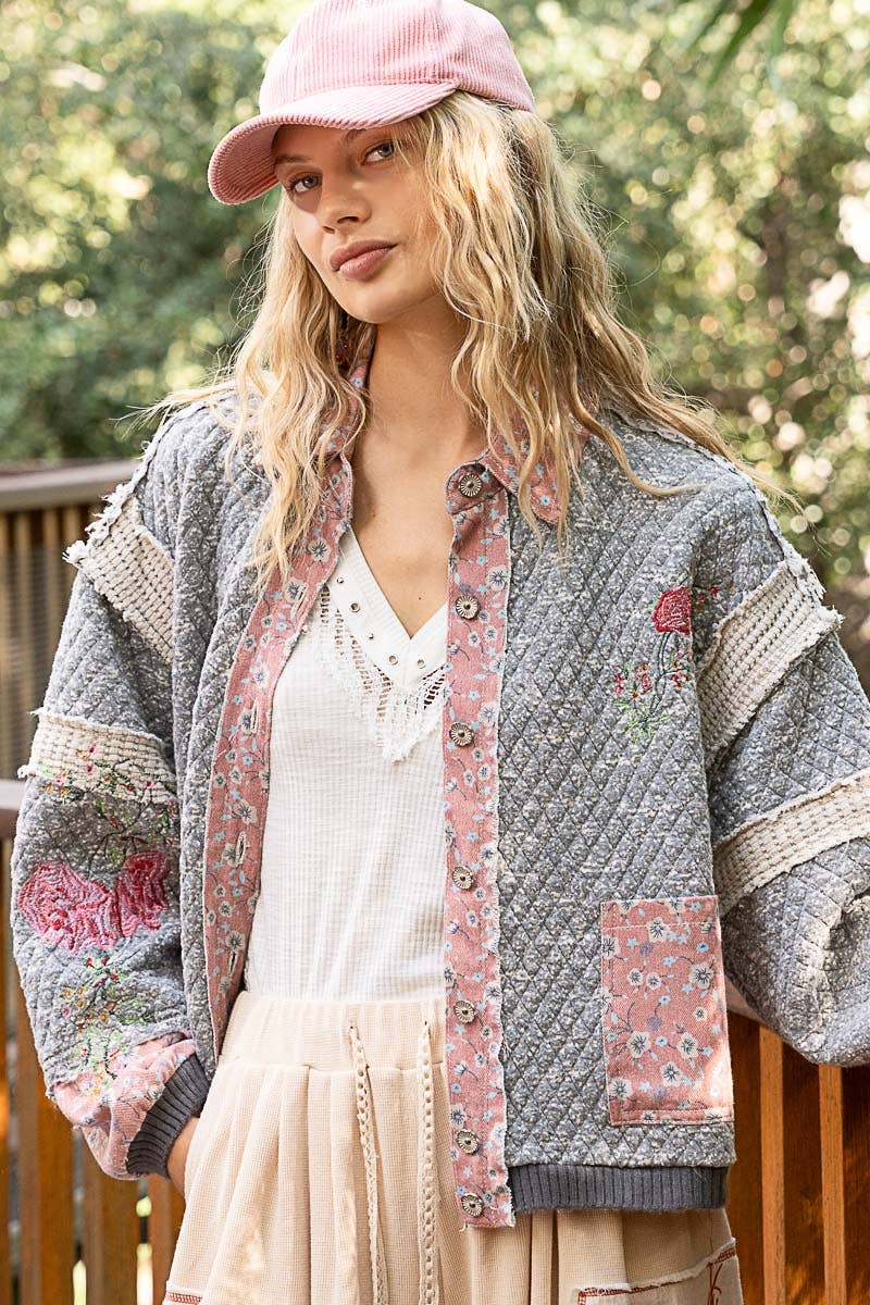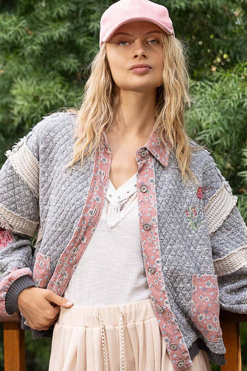 Pol Clothing - Balloon Sleeve Quilted Floral Jacket Knit Top