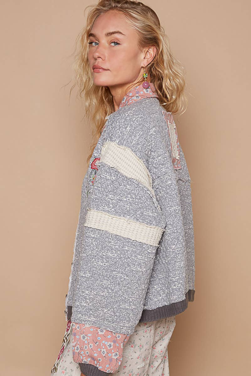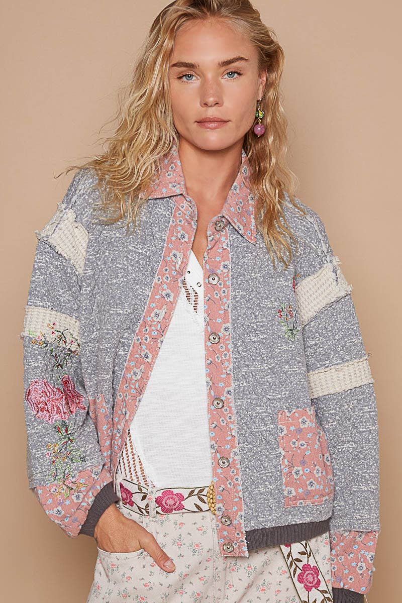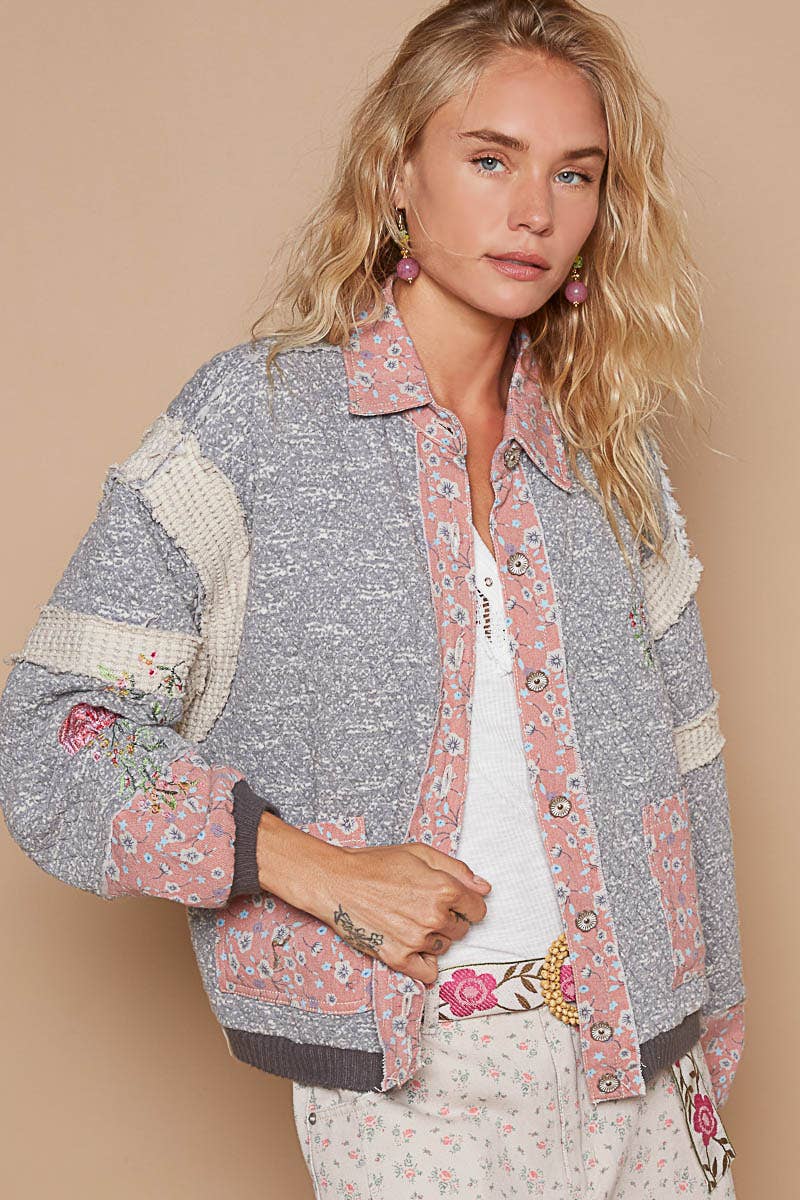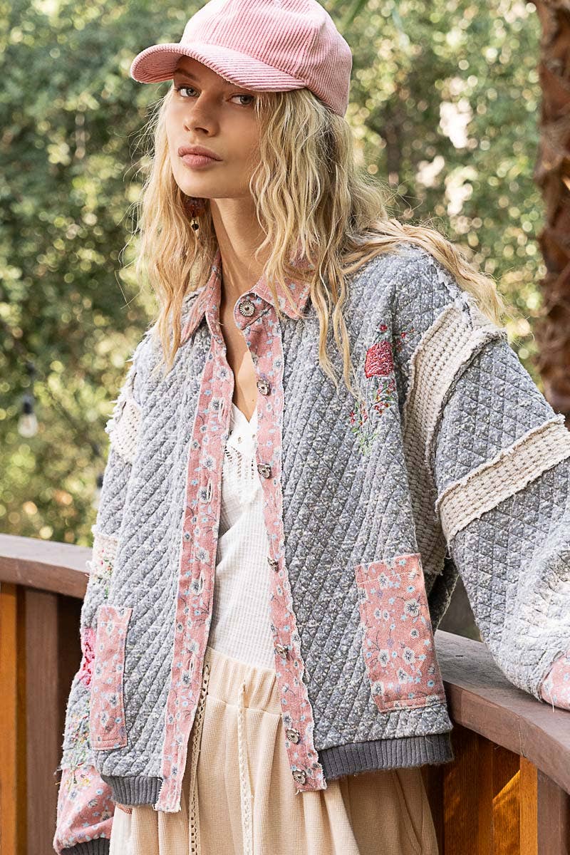 Pol Clothing - Balloon Sleeve Quilted Floral Jacket Knit Top